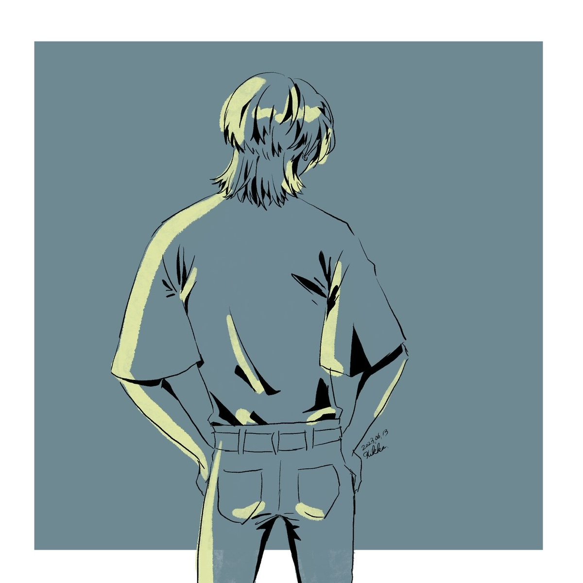 0 3 30分ドローイング13日目 後ろ姿もアオリも大変難しい #イラスト #落描き 23/06/14 09:08