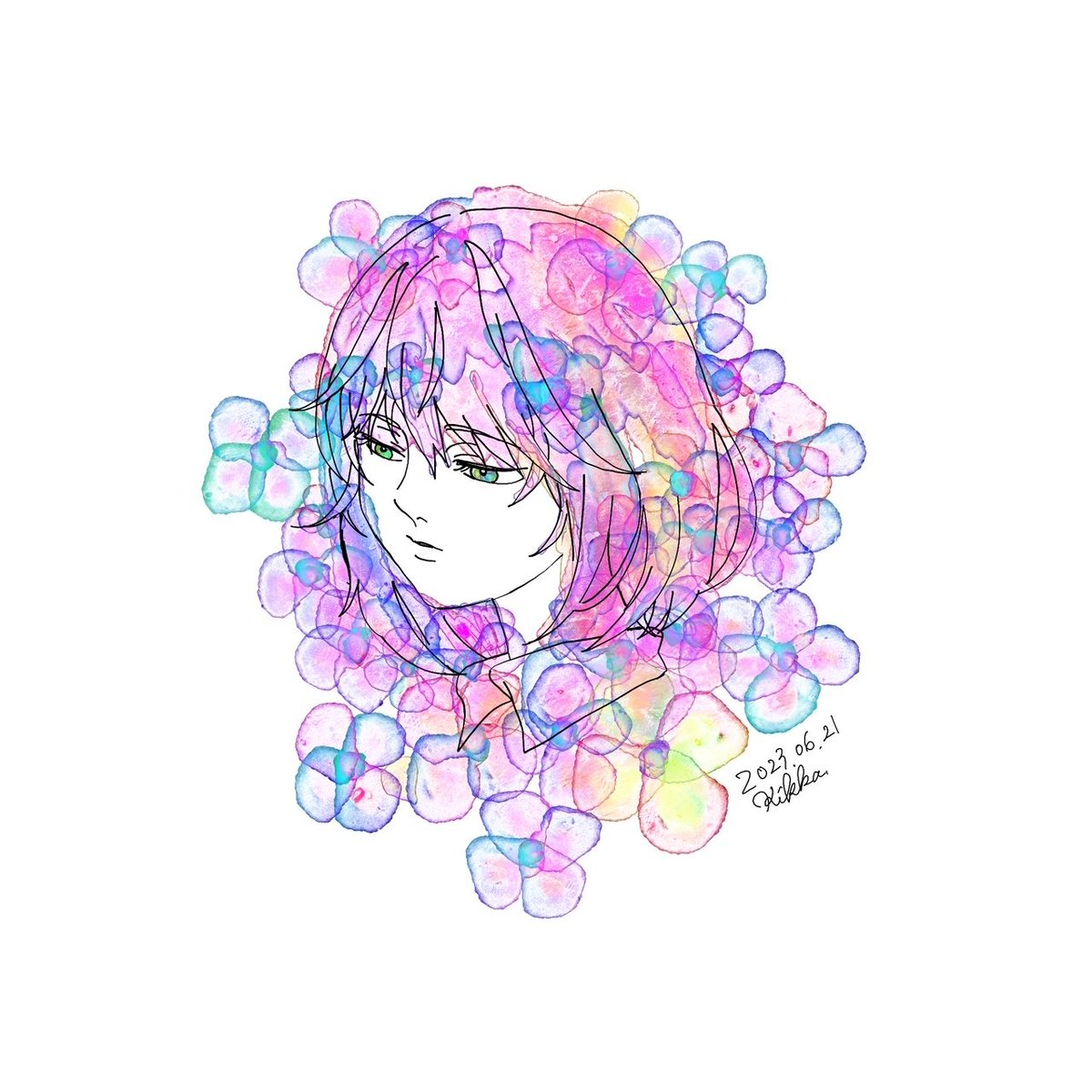 0 4 30分ドローイング20日目 面白いペン見つけたから試し描き〜 紫陽花 #イラスト #落描き 23/06/21 09:06