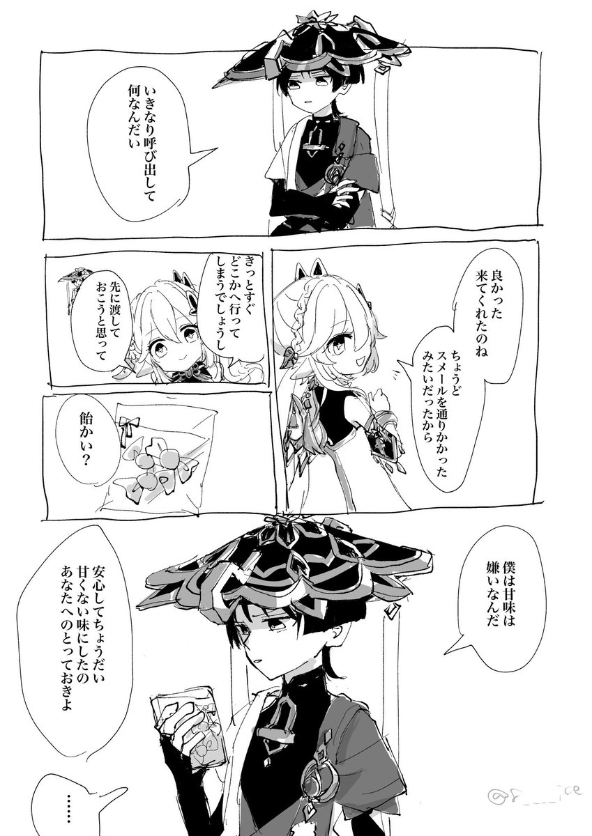 153 1063 #原神 ⚠︎3.2 魔神任務のネタバレを含みます ナヒーダちゃんとスカラマシュくん(続) こっちで起きた場合 22/11/22 02:17