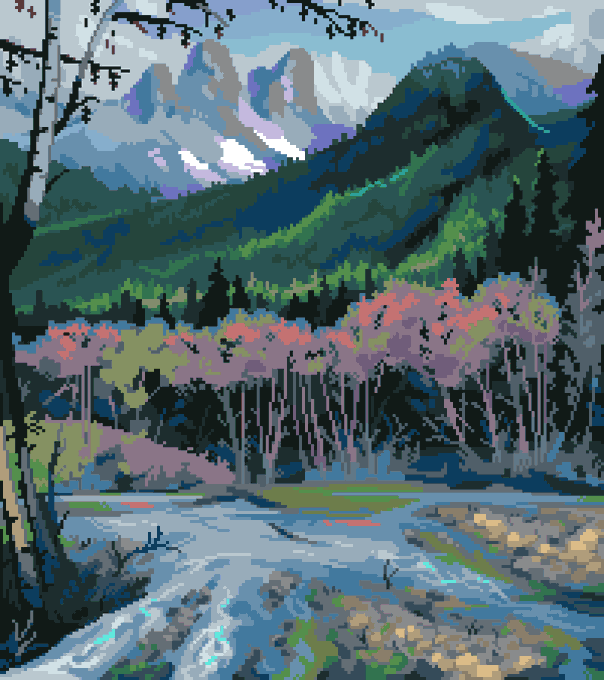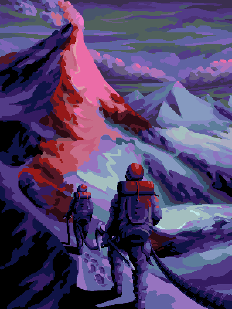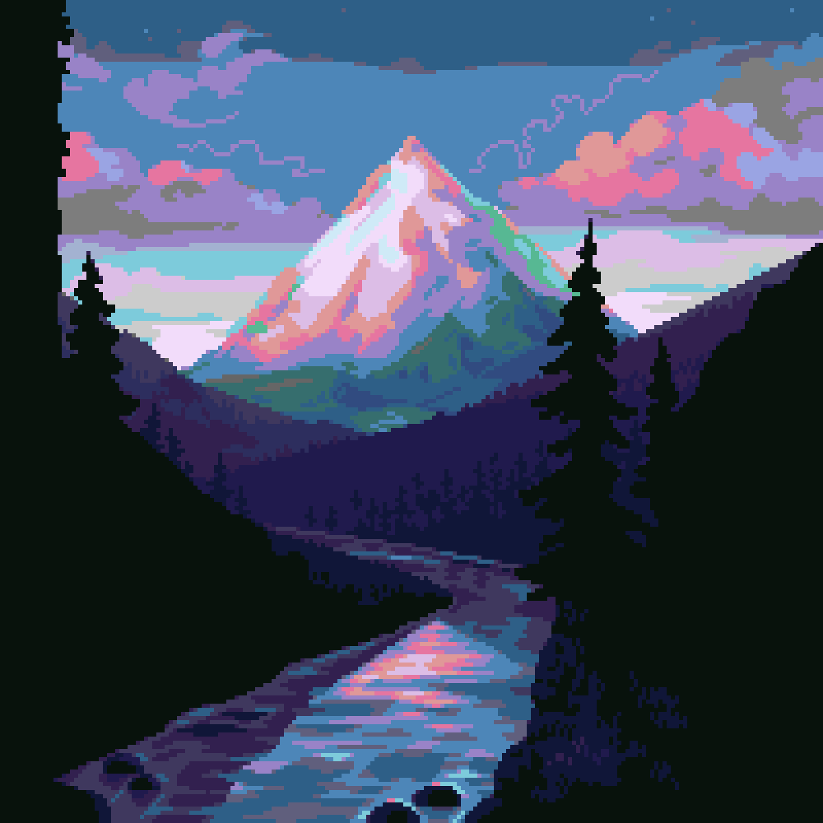 Pleasant Valley, my first commission piece. This was done for karmachest. 450 x 600, 29 colors. I thought I'd share this as my account is suddenly alive again. If you're a new follower, please, please, please tell me how you found me. Am I featured on TIME? #pixelart #landscape
