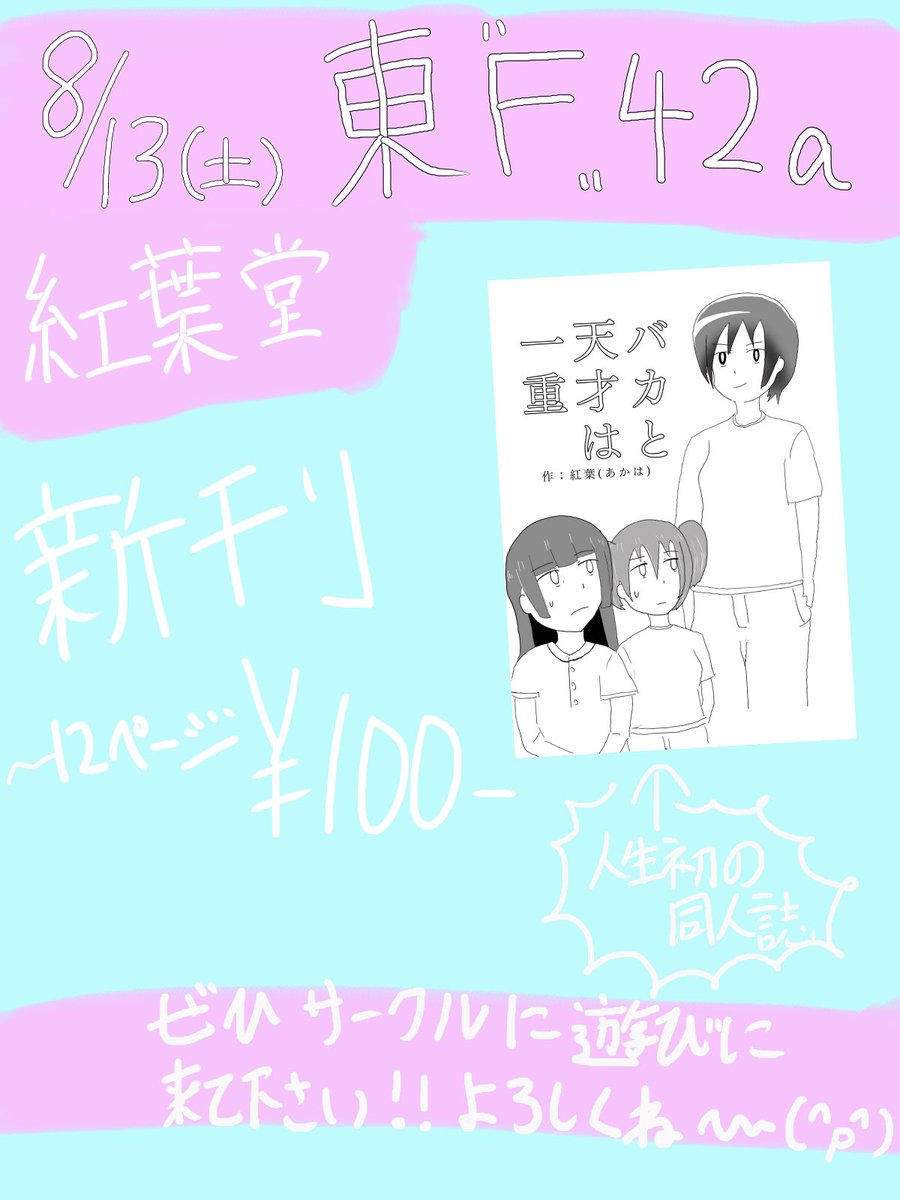 8 12 夏コミのおしながき❗️ 『紅葉堂』 8/13(土) C100【東F-42a】 創作ギャグ本 100円 休業中コスプレイヤーが無謀にも初めての同人誌にチャレンジしました✌️ ぜひサークルに遊びに来てくださいね〜☺️ #C100 22/08/11 20:46