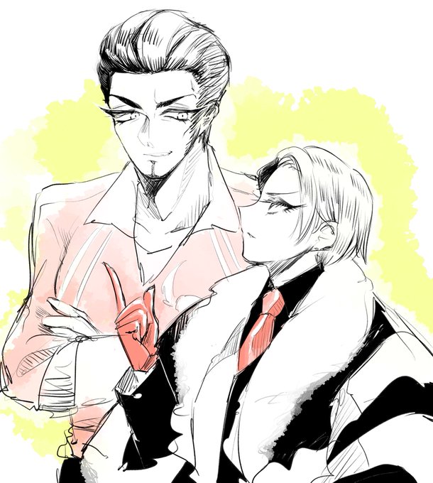 #ツイステファンアート バルガス先生とクルーウェル先生の体格差に無限の可能性を感じるという絵