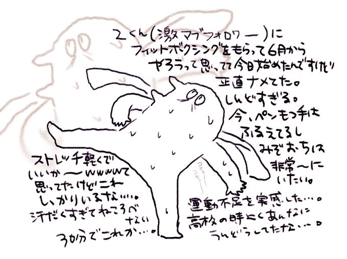 落書きする前に軽く運動するか〜てやったけどあまりにもしんど過ぎて線すらまともに引けなくなった
