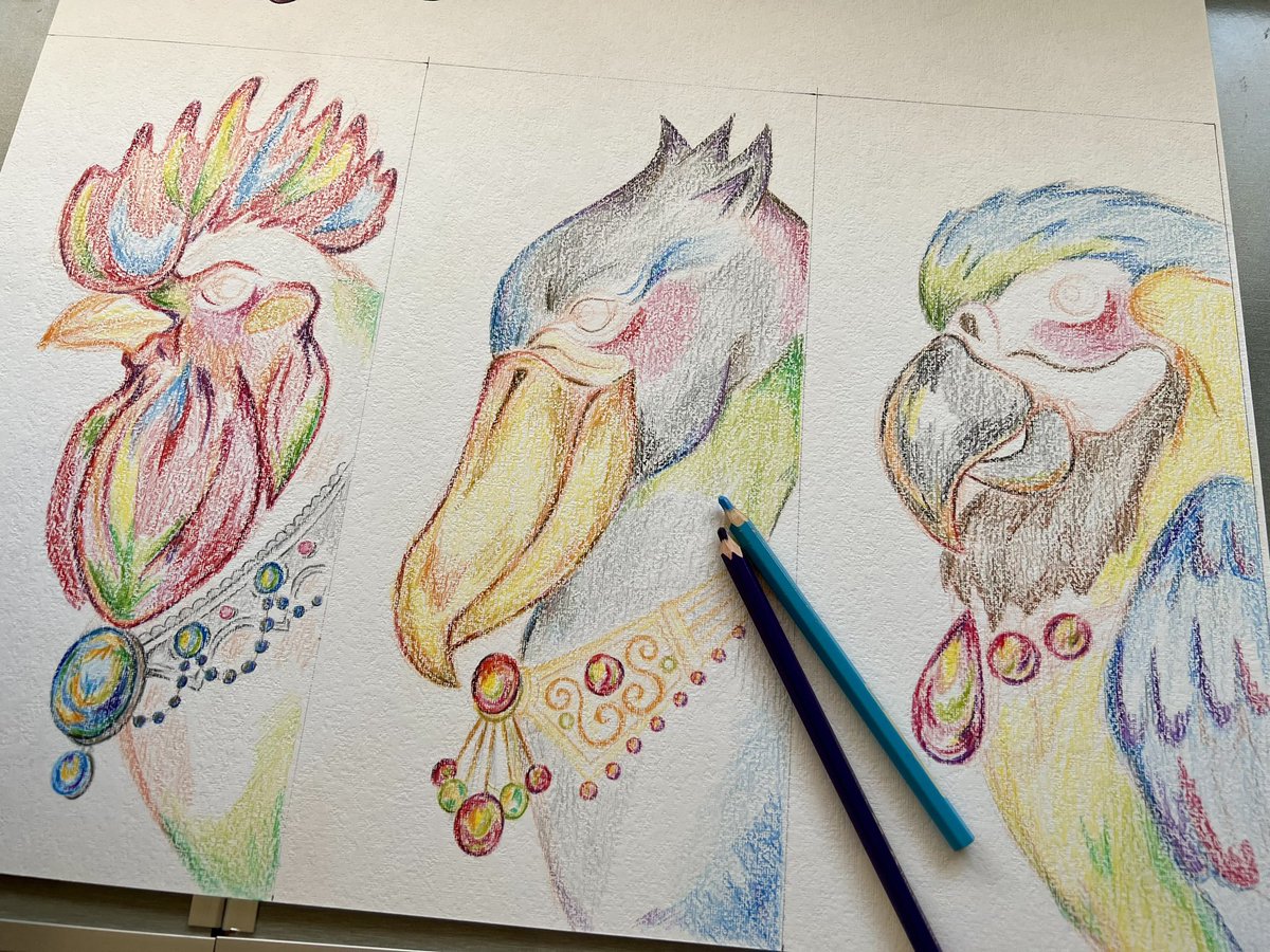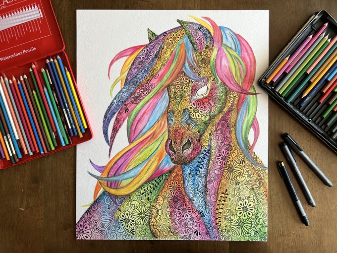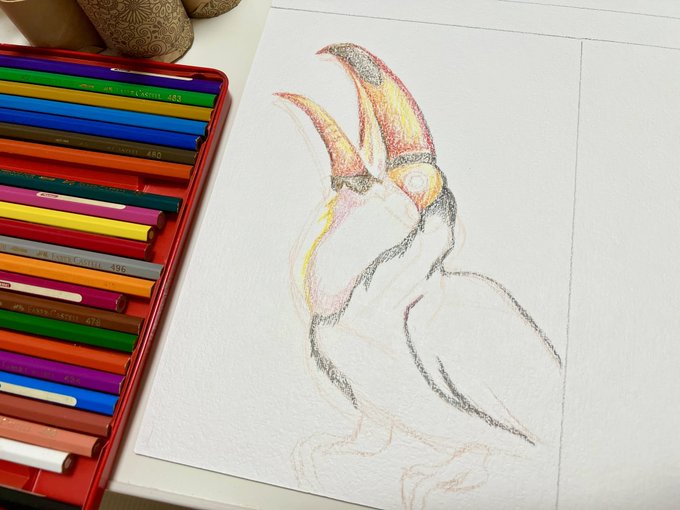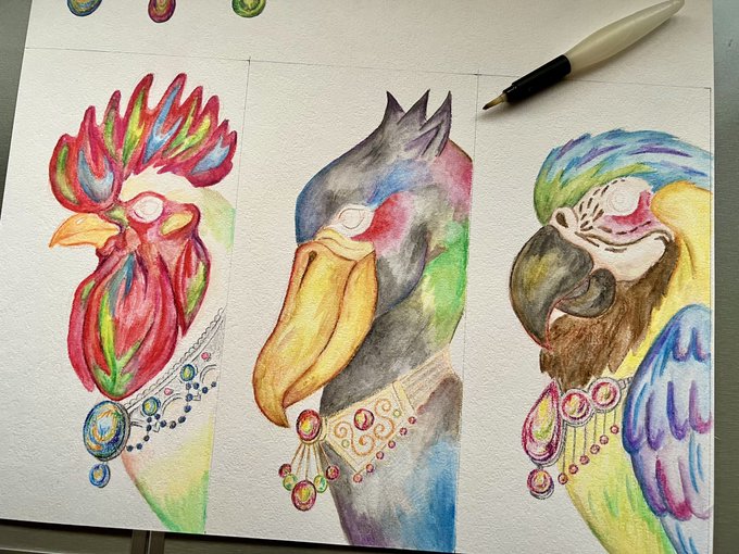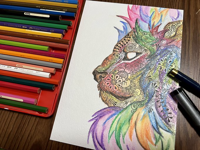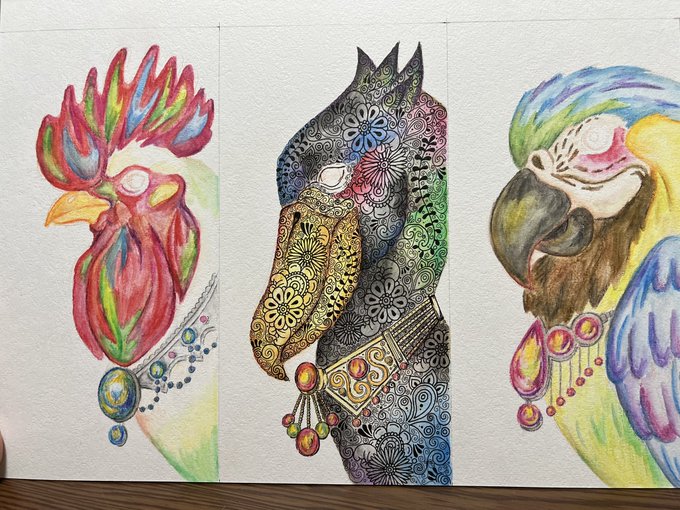 完成! 写真だとあまり発色がうまく写らないですね💦 (絵を描いている様子はこの投稿のツリーでご覧ください🙇♀️) 後日額装したものをツイートします! #絵描きさんと繋がりたい #絵柄が好みって人にフォローされたい #illustration