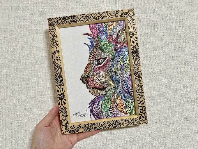 額完成しました🖼 F8サイズ用の額を描きあげるのに約90〜100分ほどかかります。 こちらの額に作品を入れた様子は是非展示会場で❤️(展示会案内は固定ツイートをご覧下さい) #絵描きさんと繋がりたい #ゴールデンウィークSNS展覧会2023 #アナログ絵 #ゴールデンウィークはフォロワーが増えるらしい twitter.com/8drawers_art/s…