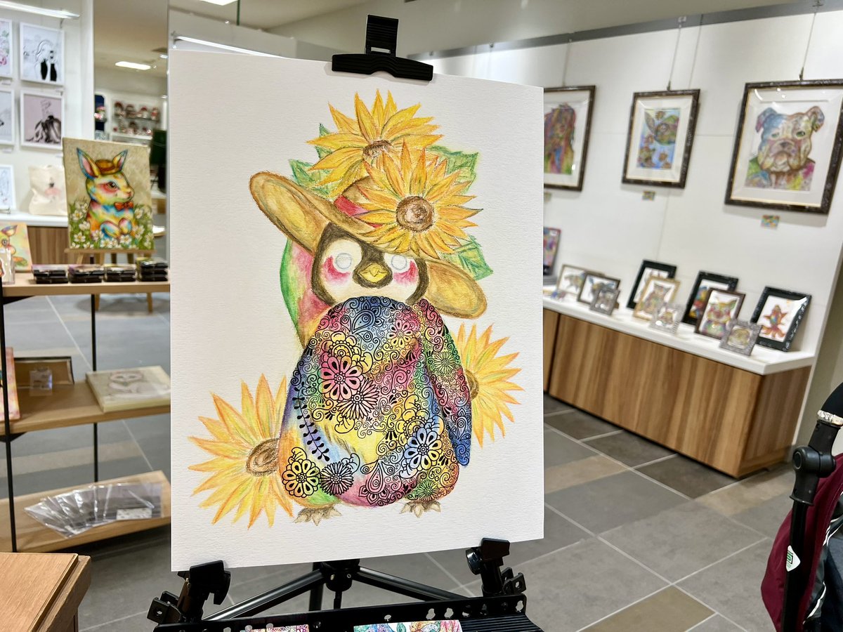 \🎊展示会7日目🎊/ おはようございます。本日は息子と一緒に13時〜15時30分まで在廊予定です。ゆっくりライブペイントも進めていきますので是非遊びにいらしてくださいね❤️息子と一緒にお待ちしてます🤱 🌼2023年5月18日(木)〜29日(月) 🌼福岡三越百貨店4階 #絵描きさんと繫がりたい #アナログ絵