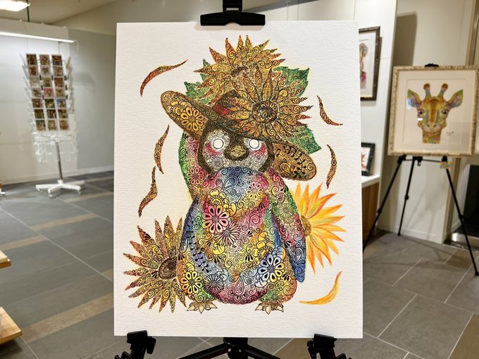 \🎊展示会9日目🎊/ おはようございます。本日は13時〜閉店まで在廊予定です。ちょっとだけ早く切り上げるかもしれませんが会場で皆様をお待ちいたしております。ライブペイント進めます✨展示会も残り3日 🌼2023年5月18日(木)〜29日(月) 🌼福岡三越百貨店4階 #絵描きさんと繫がりたい #アナログ絵