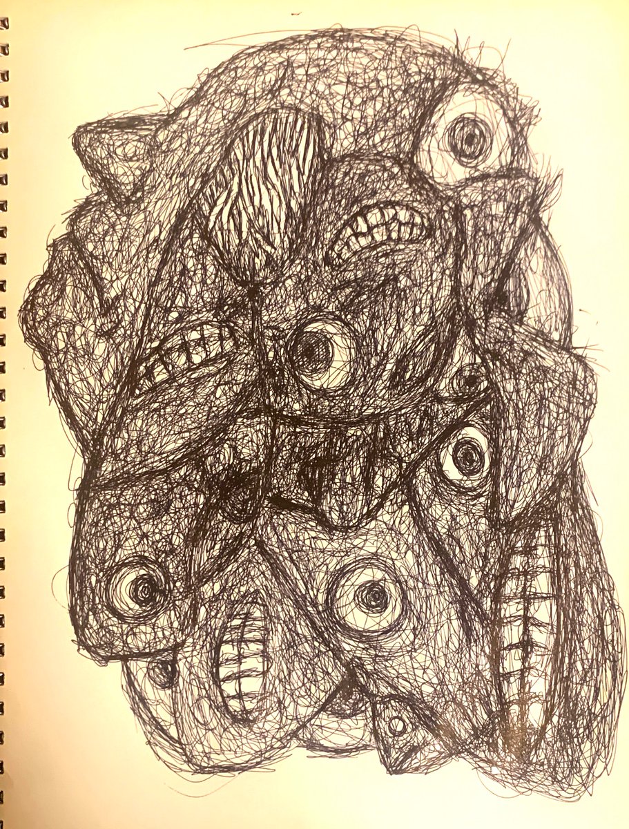10 58 鬼が島からの復讐 #イラスト #鬼 #ボールペン画 #落書きギルド 22/05/15 20:49
