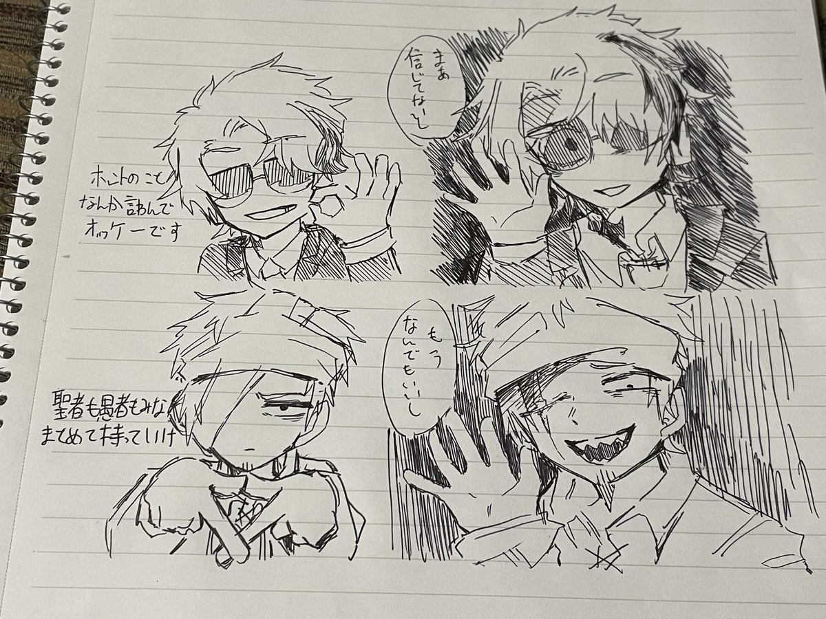 1 11 #黒猫娘スペース これを性癖って言っていいのかあれだけど、 やっぱいろんな顔してるやつとかギャップがあるのが好きかな〜 聞きながら落書きしてたもの 22/08/03 21:28
