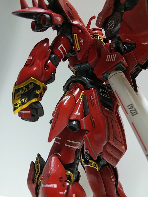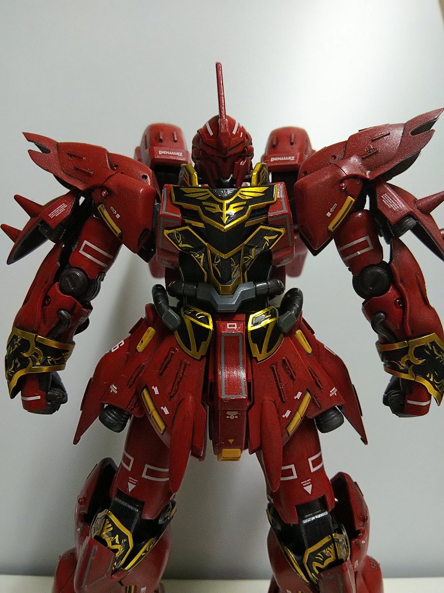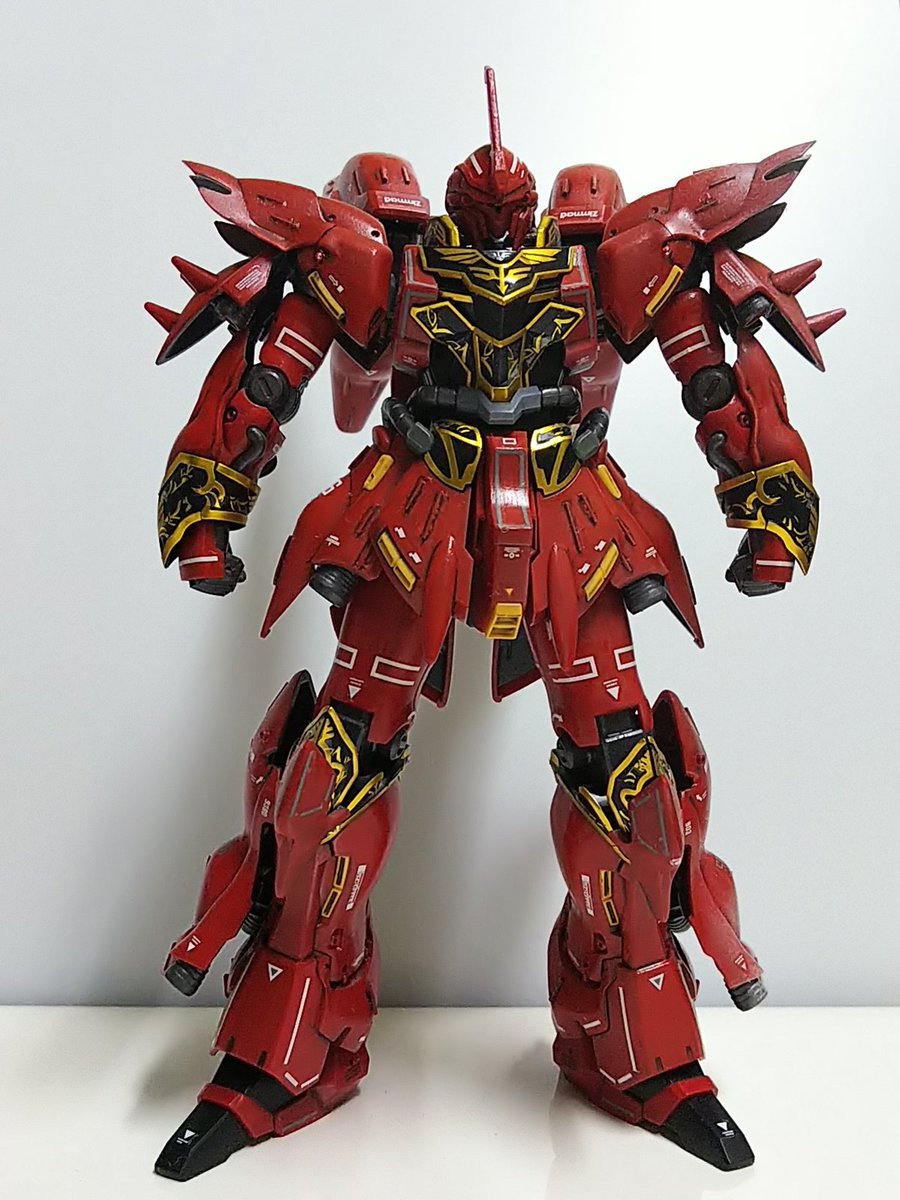 #ガンプラ #ガンプラはどんな自由な発想で作ってもいいんだ 頂いたパチ組関節くたくたHGシナンジュ クリア乾き組んで完成です ポリキャップ替えたり形状替えてなんとか立ちます 後ろ重心は仕方ないですね これをお返しして修繕費用としてギャン子を頂きます