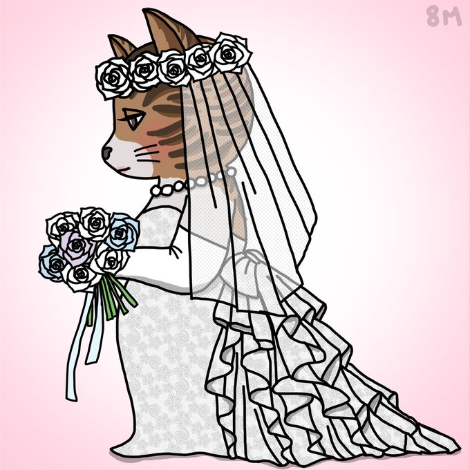 イラストあっぷ。ジューンブライド😺。 instagram.com/8kakumikan #illustration #イラスト #イラストレーション #アート #デジタルイラスト #猫イラスト #猫