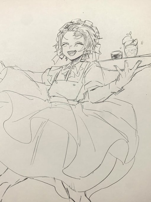メイドの日だったからヤケクソになってめちゃくちゃ楽しんでるメイド炭くんのらくがき
