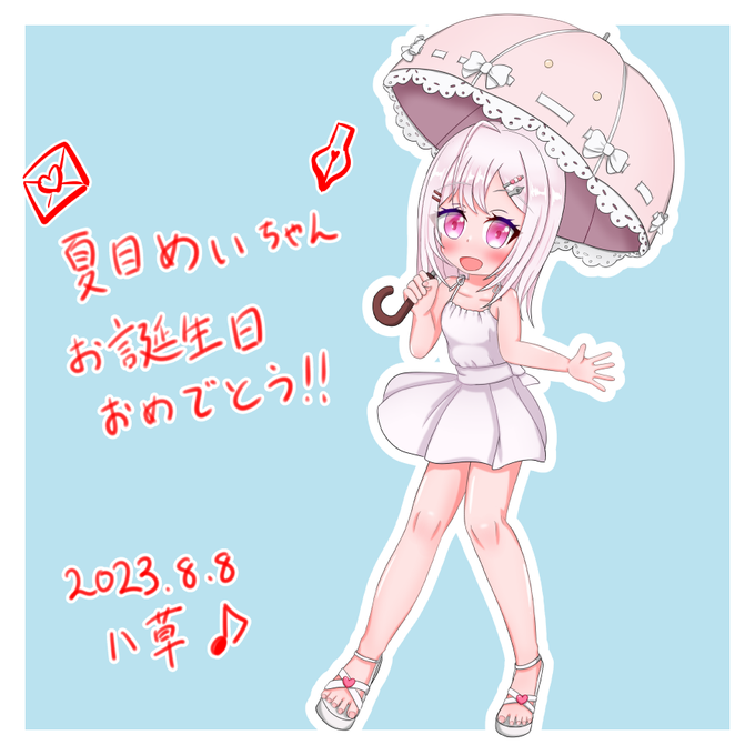 めいちゃんお誕生日おめでとう!💌🎉 常に新しいことに挑戦するめいちゃんの行動力にはいつも驚かさて、配信を見るのが毎日の楽しみでその一つ一つが大切な思い出です。 いつもありがとう、そしてこれから1年も沢山の活躍を楽しみにしてます! #夏目めい #夏目めい生誕祭2022