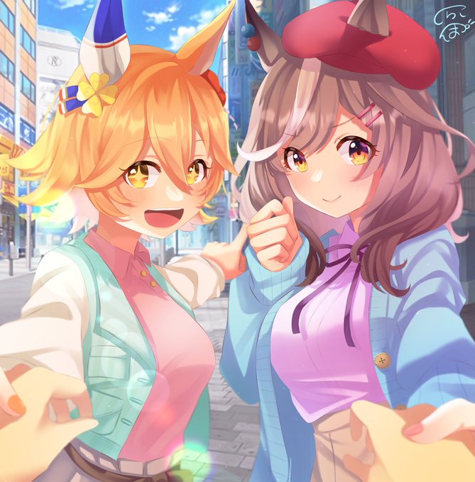 「「行きましょう!トレーナーさん!」」 マチカネシスターズとお出掛けしたい人生でした… (先日の投票、ご協力いただいた方ありがとうございました!一番人気マチカネシスターズ✨) #ウマ娘 #マチカネタンホイザ #マチカネフクキタル