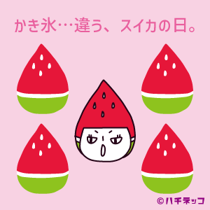 かき氷っぽく見えるけどスイカだよ。 だって今日はスイカ記念日…違う、スイカの日。 #スイカ #スイカの日 #かき氷 #イラスト #絵 #ゆるいイラスト #絵柄が好みって人にフォローされたい #イラスト好きな人と繋がりたい