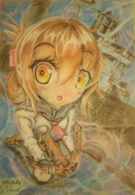 深夜テンション 10分オーバー 線画まではアナログ。色塗りはアイビスペイント。 陰影、ハイライトは時間切れ😢 #艦これ版深夜の真剣お絵描き60分一本勝負 #艦これ版真剣お絵描き60分一本勝負_20230422 #艦これ #嵐