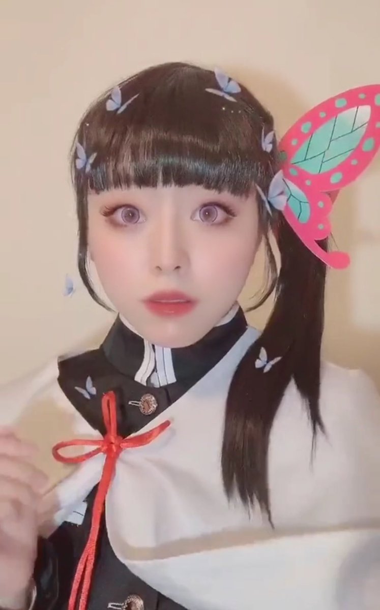 ⚠︎コスプレ 動画のスクショだから画質ぅ…って感じなんだけど、昨日宅コスした〜〜🦋 コスプレ1月ぶり!! 輪郭モロにでるのでゴリ加工必須です