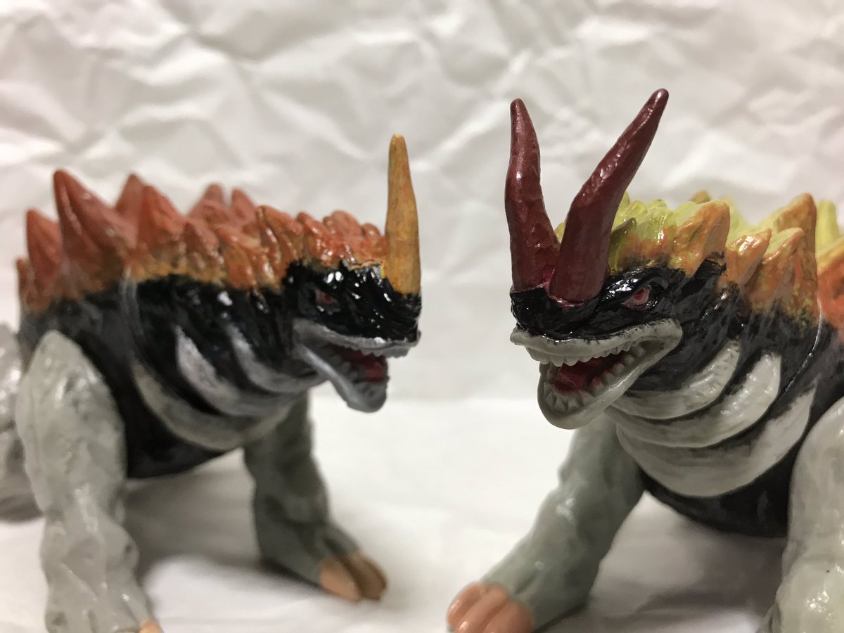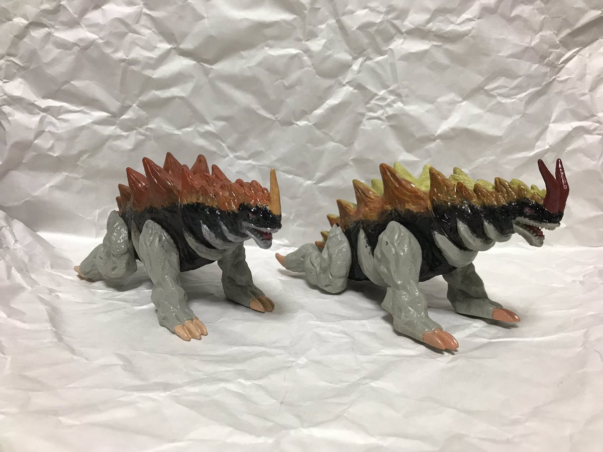 2体並べるとこのような感じ 劇中では揃っての登場がなかったのでこうして手元に揃えることが出来るのは嬉しいです #ウルトラフィギュア改造同好会 #ソフビ改造 #フィギュア改造 #フィギュアリペイント #造って遊ぼ
