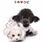 きなこ君に弟うみ君❤️が出来たお祝いに描かせて頂きました😊 今月分オーダー受け付け中です❣️ 先ずはDMかインスタで😊 よろしくお願いします。 #犬の似顔絵 #犬好きさんと繋がりたい #犬のいる暮らし #イラスト #トイプードル #もふもふ #黒ぷー #パーティーカラープードル