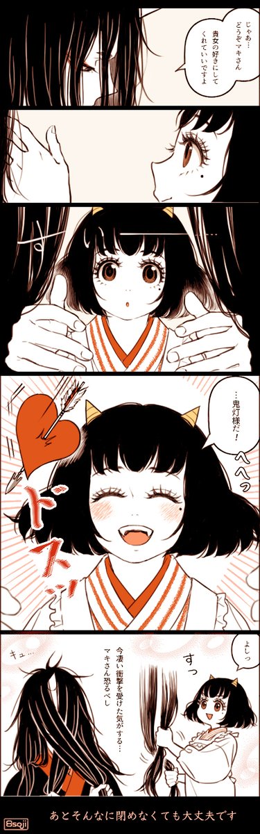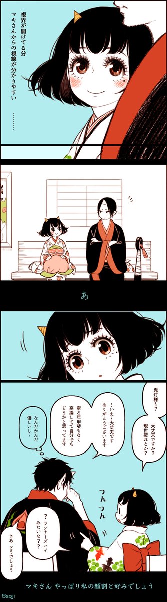 こちらのコウさん(@yamaaako)との鬼マキ合作は268話の妄想から捏ね捏ね製造したものです。 未見の方は良かったら是非〜 「本日も晴れ晴れと」ハレの日に纏わる二人のお話。 前半:pixiv.net/artworks/10171… 後半:pixiv.net/artworks/10173… おまけ:pixiv.net/artworks/10171…