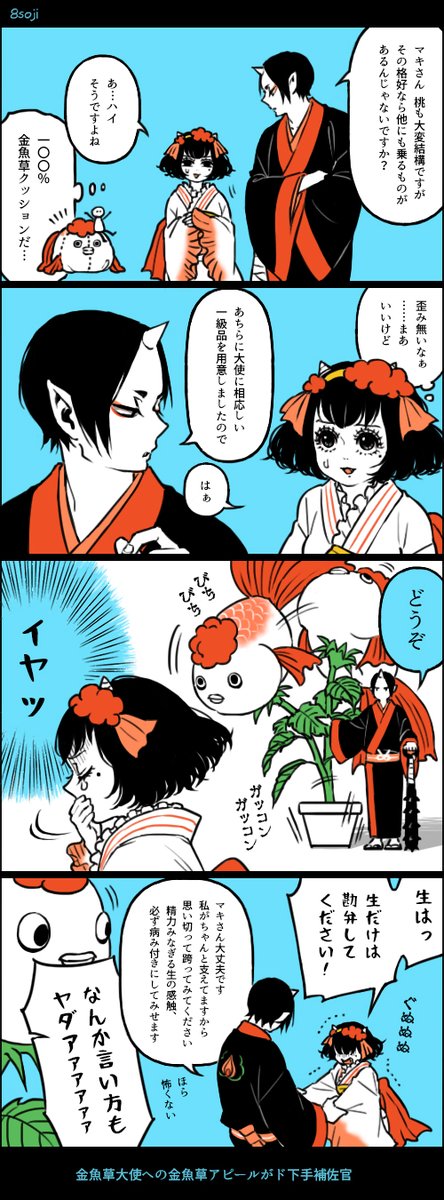 地獄ログ14 pixiv.net/artworks/10932… あれこれ修正したり新しいのを追加しています。鬼マキちゃんお好きな方は是非どうぞ~👹🍑 真新しいのは二つです。短髪補佐官夫婦版とドアノブ壊す補佐官のおまけ小ネタ(リプに一部分ぶら下げます)