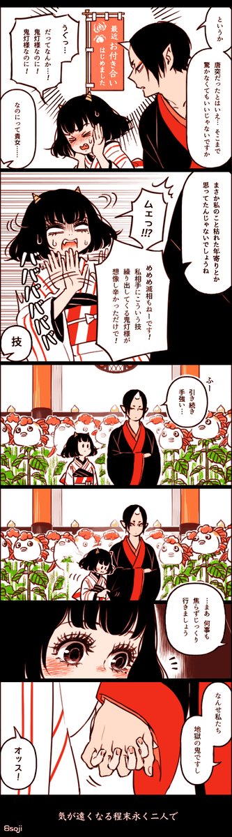 ⬆️リプ元の夫婦鬼マキまとめ本のサンプルです。 この4枚はリメイクしたもの。リメイク前のはピクシブに収納してあります。 地獄ログ2 pixiv.net/artworks/70266… 地獄ログ6 pixiv.net/artworks/74427… 地獄ログ12 pixiv.net/artworks/95045…