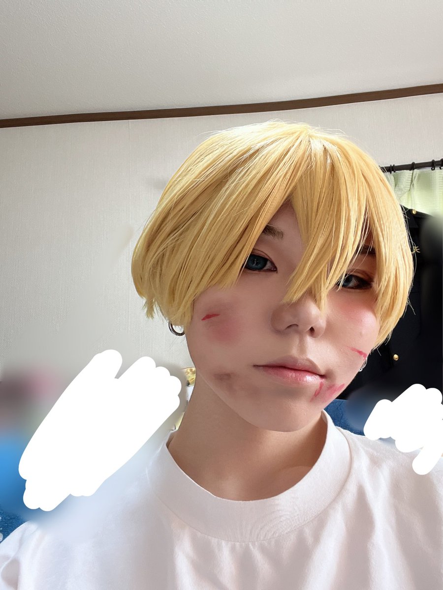 千冬のウィッグ微調整後のコスです。 カラコンしか加工してないので、後日また上げ直します。💦 ※衣装捏造 ※カラコン加工 ※生活感がすごいので、一枚はペン加工で消してます。 #コスプレ初心者 #東京卍リベンジャーズコスプレ #松野千冬コス