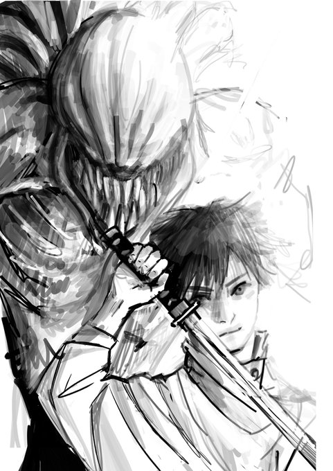 Had idea to draw a scene from Alien (1979) but with Reze and Denji. Shotout to Chapters 44-46. Sketch #rkgk #下書き #chainsawman
