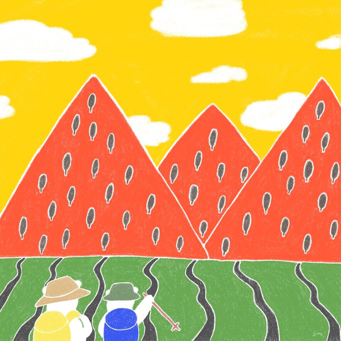 #スイカの日 #イラスト #ゆるいイラスト スイカ山登山⛰️🍉