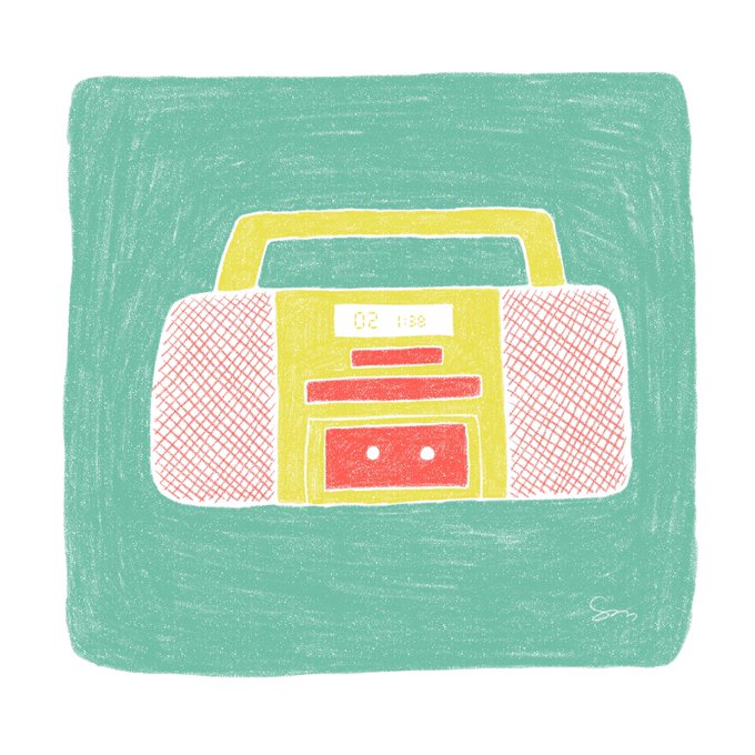 ミュージックの日 カセットテープ、CD、MD詰まってたラジカセ懐かしい #イラスト #illustration