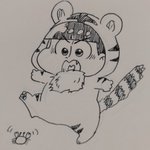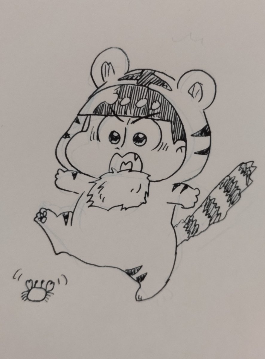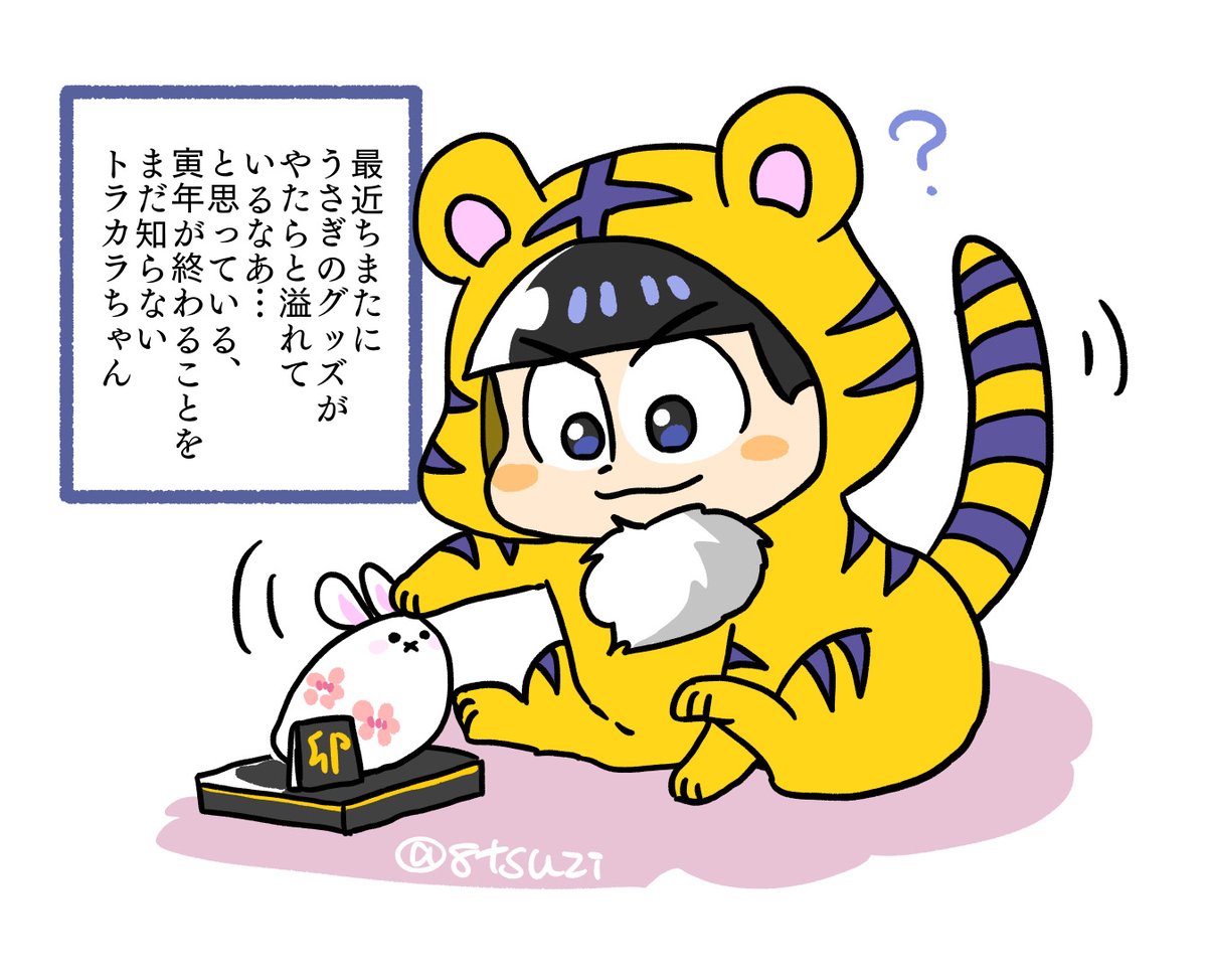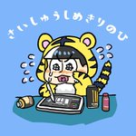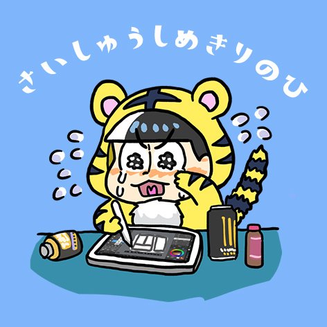 #トラカラカレンダー 掲載OKとのことで! トラカラッキーセブン版のノベルティシールのイラストです!🐯 無力粉さんがいい感じに背景と文字を入れてくださいました!!!!ありがとうございます! さいしゅうしめきりのひは最終締切りの日の私がだいたいいつもこんなかんじです