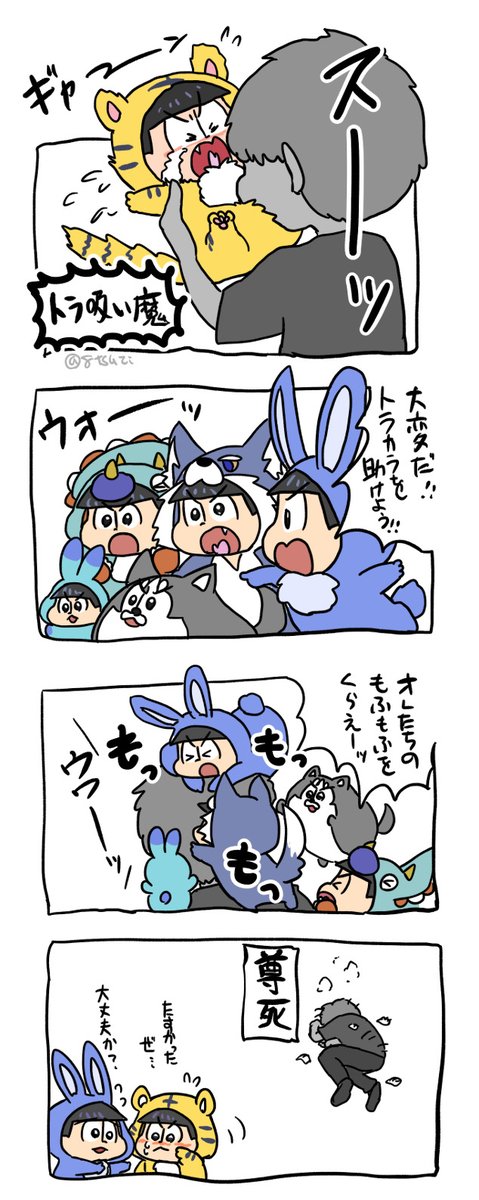 無力粉さんのツイのわかりみがマッハだったので想像図を描いてしまった…😘(モブのトラ吸い魔がいます) ケモカラちゃんは仲間のピンチには集まって助けに行くよ! twitter.com/moyasi_cinema/…