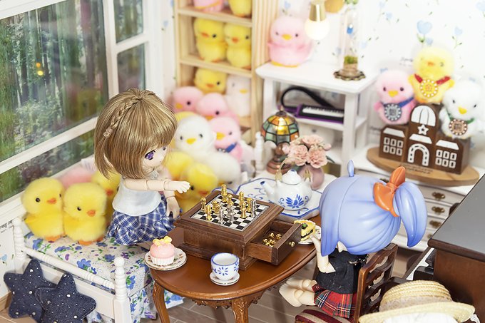 不自然に間が空きましたが、対局が続いていたと解釈下さい。(単に今日まで盤面を進める発想が無かった) リコリスりっちゃん「チェックメイト」 ジト目ちゃん「アイゼナッハがしゃべったぞ!」 リ(この窮地にボケを忘れない……おそろしい子!) #あまむす #あまむすリコリスさん大好き #キューポッシュ twitter.com/90runner/sta…