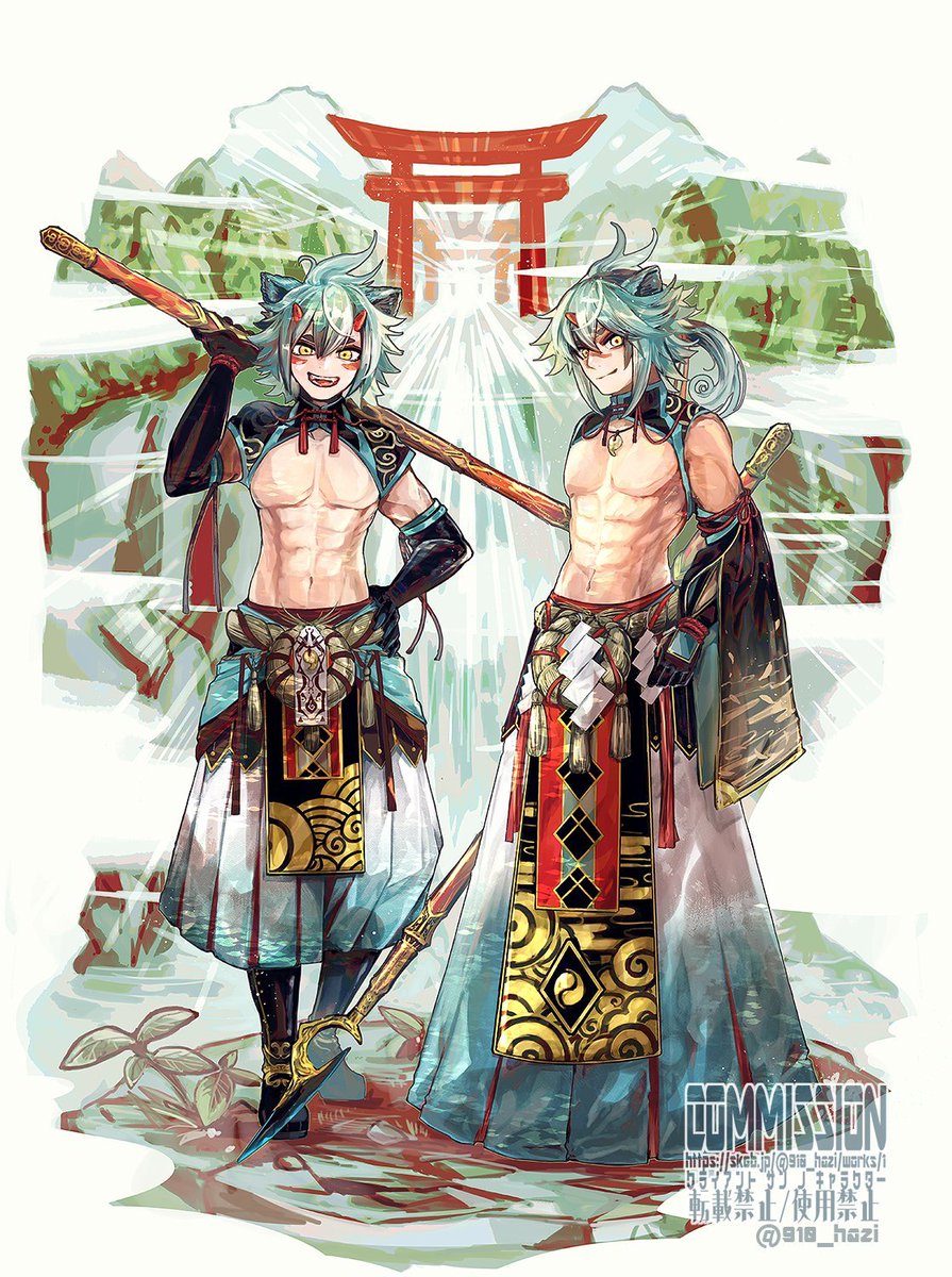 ✎Skeb✎ 無料期間中(~2/14)のみ募集しています!!!! #Skeb #Commission 🐣🐣skeb.jp/@910_hazi 🐣🐣 おまかせ多めでいいならキャラ・衣装デザインも大丈夫です。勿論立ち絵や1枚絵も大歓迎👍👍👍 厚塗りと白黒(+1色)や筋肉やファンタジーが得意です!