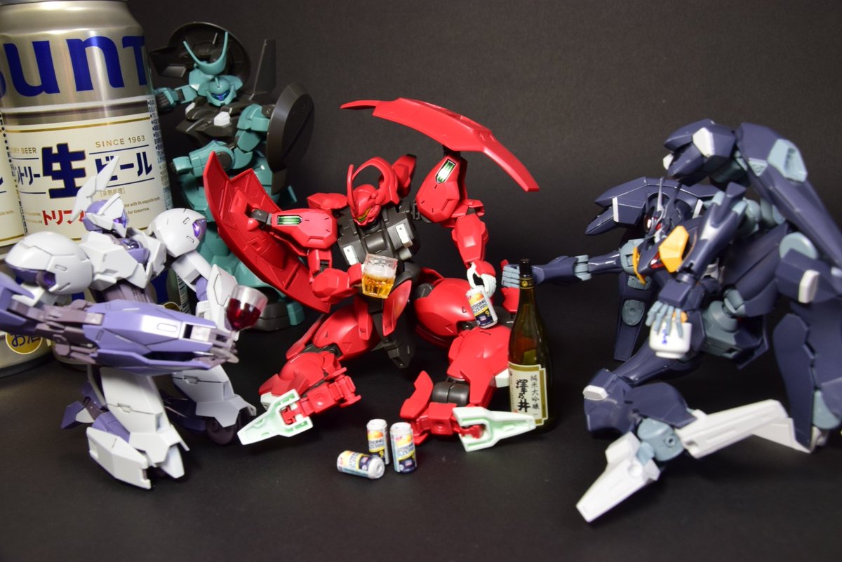 朝から水星とプリキュア交互に見ながら焼酎とビール交互に飲んでるけどゴールデンウィークだからヨシ! #ガンプラ #水星の魔女