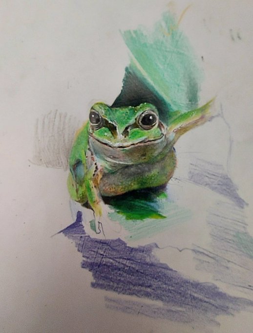 #色鉛筆イラスト #色鉛筆画 #色鉛筆 #デッサン道好会 #イラスト好きさんと繋がりたい #かえるの日 初めて挑戦中