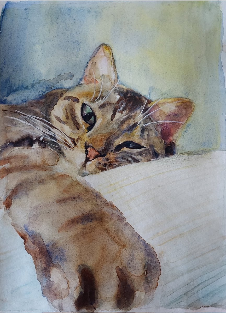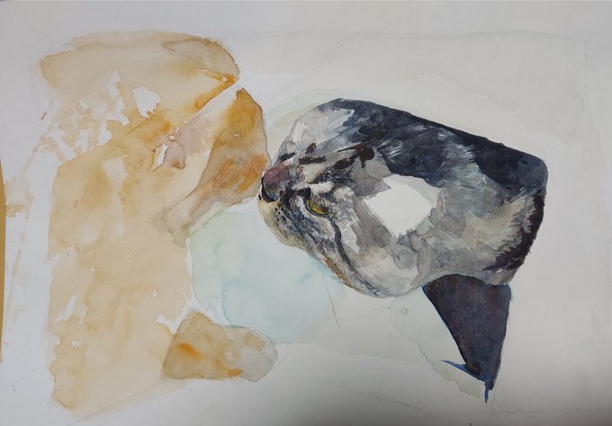 #水彩画 #イラスト #猫好きさんと繋がりたい あとは背景 ヒゲ白残せばよかった.....