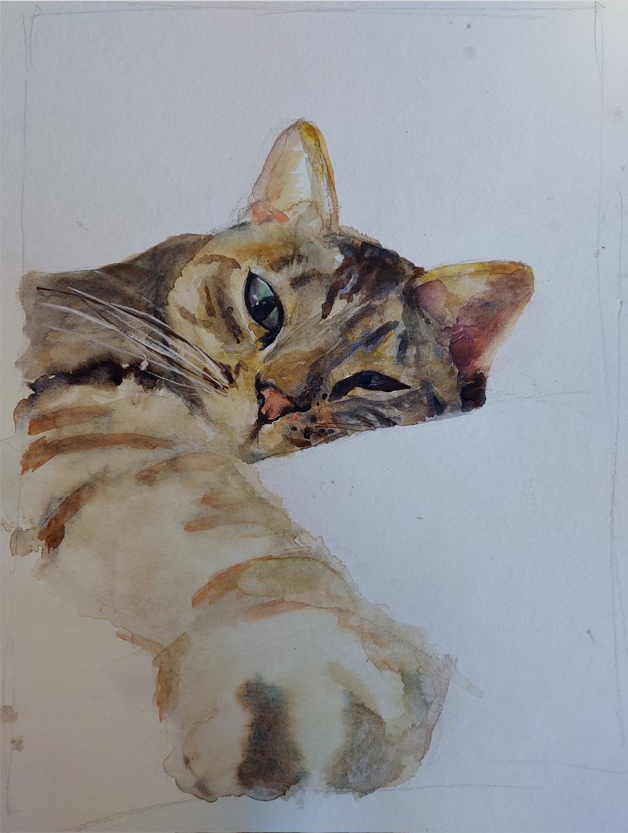 2 28 #水彩画 #イラスト #猫好きさんと繋がりたい あとは背景 ヒゲ白残せばよかった..... 21/11/10 14:26
