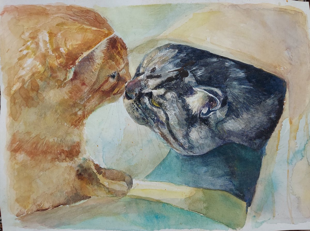 2 20 #水彩画 #猫 ニャアアアアアン 21/11/10 16:18