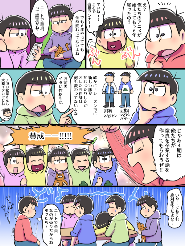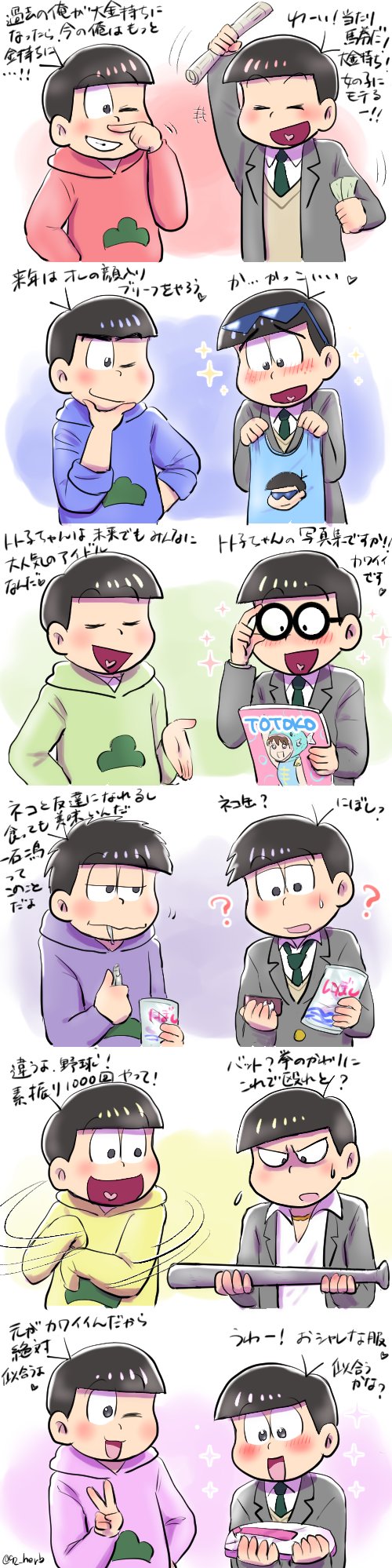 過去絵ですがお祝いしたいので(4) #松野家6つ子生誕祭お祝いイラスト 大人6つ子から18歳6つ子へプレゼント 縦長です、見にくくてすみません。それと、ミスがあったので再度上げ直しました、すみませんm(__)m