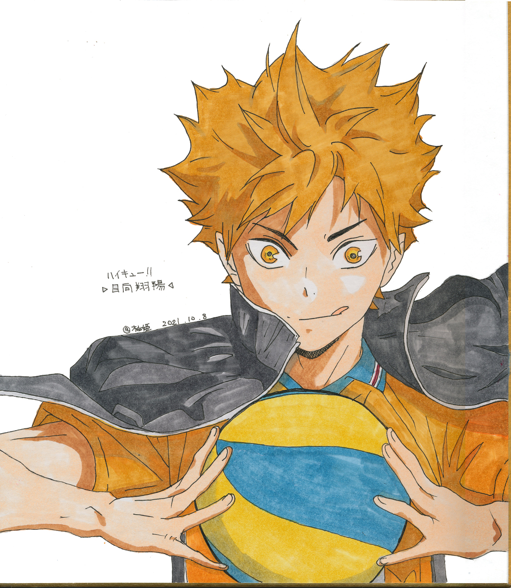 さぁ、落ち着いて1点ずつ取っていこうか(*^_^*) #ハイキュー!! #日向翔陽 #版権 #色紙 #コピック #ミリペン pixiv.net/artworks/93631…