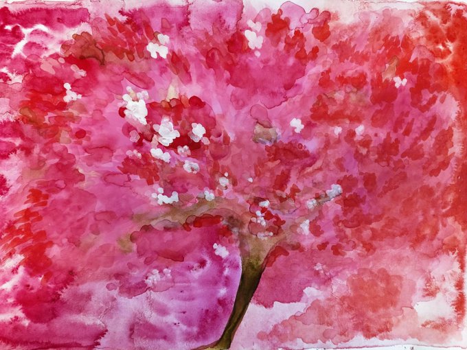 夜桜 Cherry blossoms at night #絵画 #水彩画 #風景画 #桜 #夜桜 #絵描き #cherryblossom #Watercolor #watercolorpainting #drawings