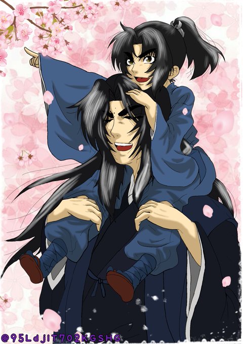 〜弟子と師匠〜 弦「見よ豹馬!桜じゃ!」 豹「ほぅ…これは綺麗な桜ですなぁ」 子供弦之介さまと、豹馬さま描きましたぁ〜(ノ*°▽°)ノ♪ #バジリスク