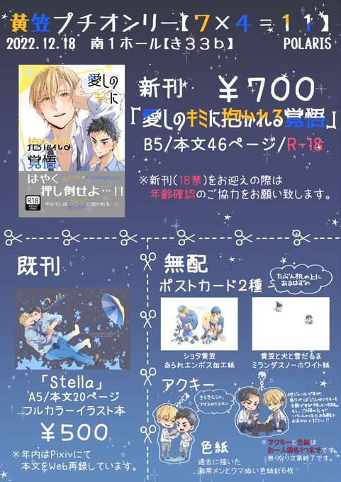 12/18のお品書きです!サンプルはしぶにあげてます!無配色紙以外のお取り置き受け付けてますのでお気軽にリプください~!画像サイズ大きすぎてバキバキだったのであげなおします…! pixiv.net/artworks/10358…