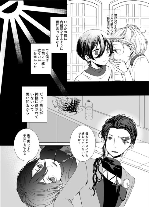 ベ「どっちもどっちね」① 遅くなりましたが、ライブ前に描いたロビ君のお話の兄さん視点になります 進捗にいいね本当にありがとうございました!頑張れました…🥲💖②はツリーに。 #VP_FA twitter.com/966ricca966/st…