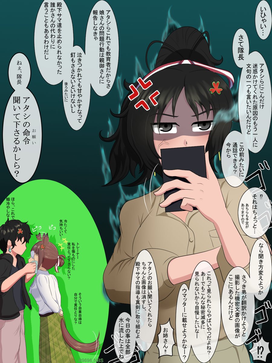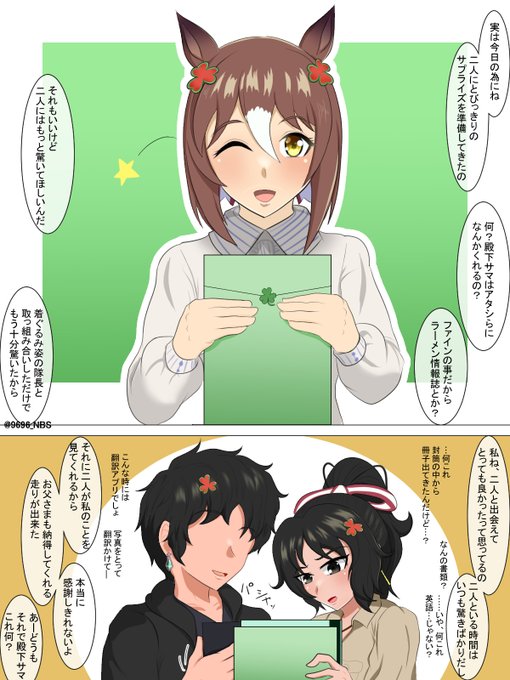殿下のドキドキサプライズ(終) ファインモーション「…お姉さんに傷ものにされちゃった」 ファイン父「…私も年下の女性に怒鳴られちゃった」 #ウマ娘 #ファインモーション #イラスト #漫画 #絵描きさんと繋がりたい #絵柄が好みって人にフォローされたい