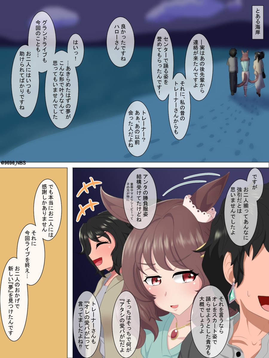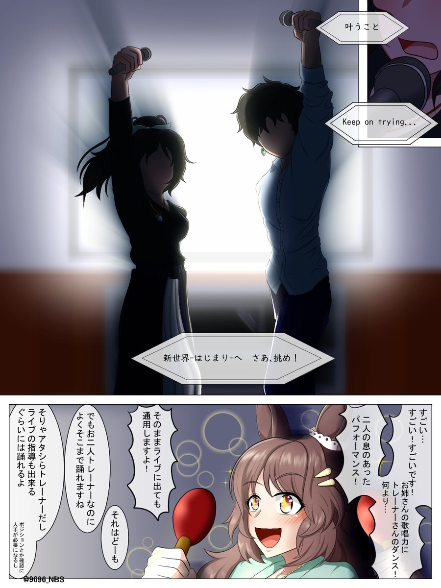 ハローさんとのお付き合い(2) トレーナーの秘密 ライブの曲は全曲歌って踊れる ※歌っていた曲は『BLOW my GALE』 #ウマ娘 #ライトハロー #イラスト #漫画 #絵描きさんと繋がりたい #絵柄が好みって人にフォローされたい