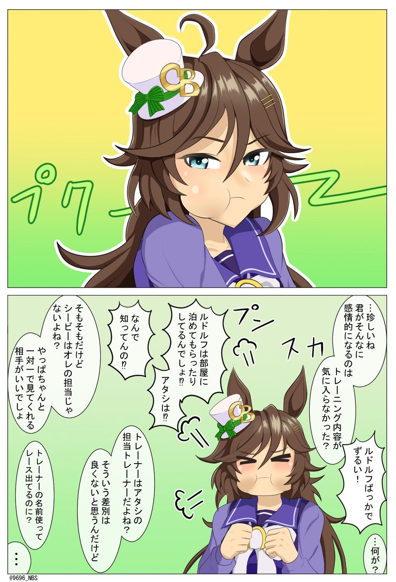ルナのつよつよ独占力(終) 威厳を置いてきたルドルフ 様子を見に来たシリウス 恩はある―――がそれはそれのクリスエス シンボリ家の共有財産トレーナー @seamt1217さんからのメッセージで思いついた内容です。 #ウマ娘 #シンボリルドルフ #イラスト好きな人と繋がりたい #絵描きさんと繋がりたい