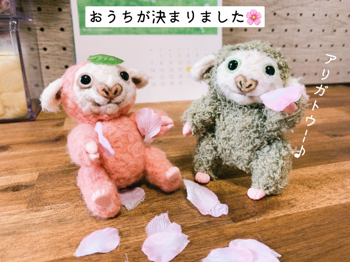 0 1 春の妖精 サクラノモッチと ヨモギノモッチ🌸 久しぶりの誕生! 生み出せるって幸せ○ #羊毛フェルト #私の世界 22/03/31 16:00