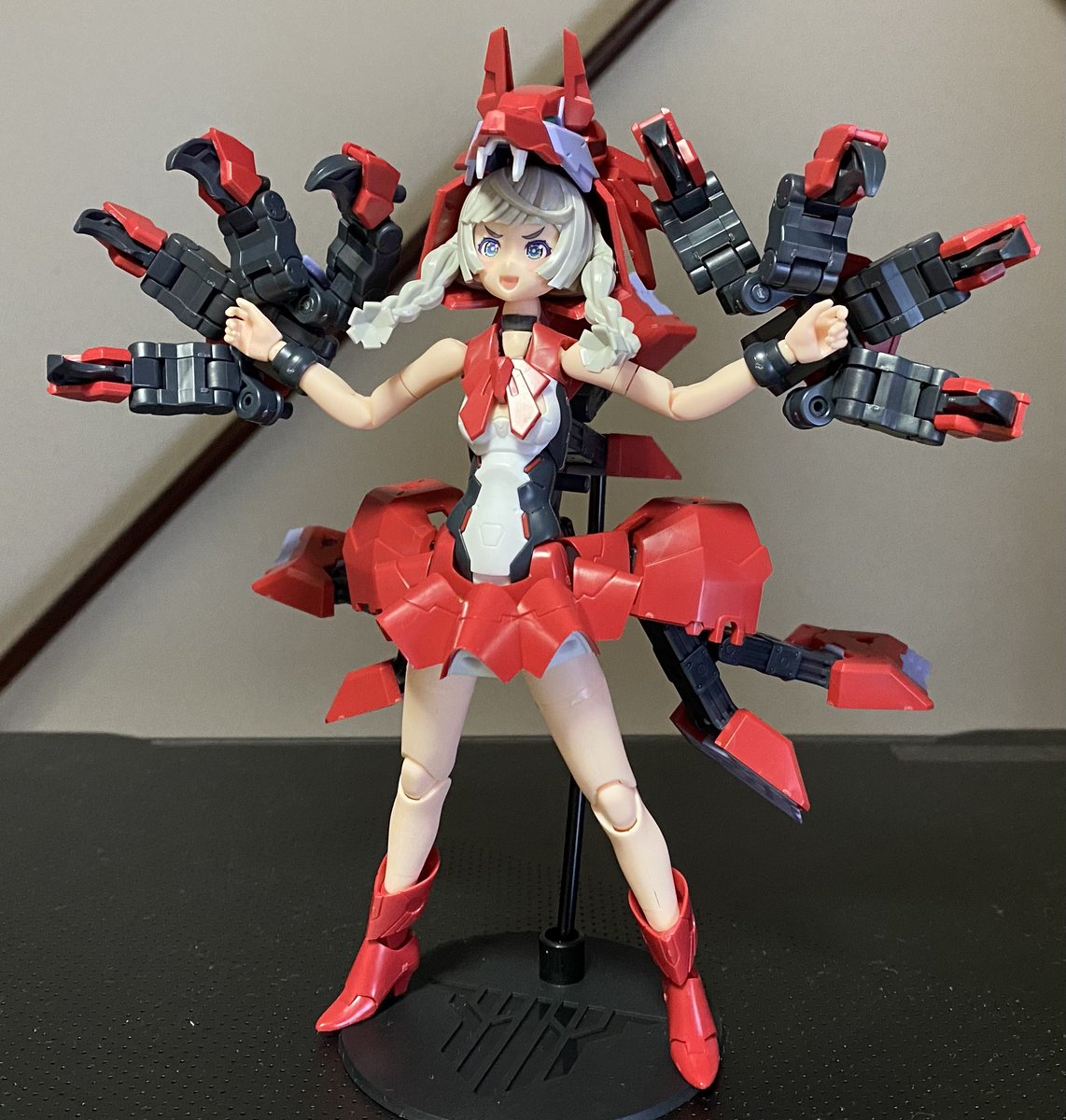 10 62 まちがえた。 赤ずきんちゃんできた! ボリューム増加と可動の両立がよくできていて楽しいぞ。 #メガミデバイス 22/07/25 15:53